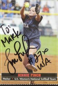 Jennie Finch (Member of the 2004 Olympic Gold Medal Softball Team, signed in 16 days) rec`d 10-09-04