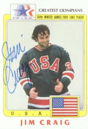 Jim Craig (Goalie for the 1980 gold medal winning hockey team in the Lake Placid Olympics. He signed my card in 3 weeks) rec`d 05-24-01