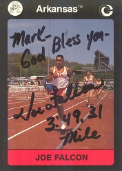 Joe Falcon (Winner of six individual NCAA titles in cross country, indoor & outdoor track while at Arkansas. He was nice enough to sign in 1 week from work) rec'd 05-12-15
