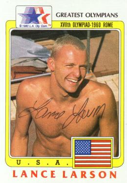 Chris von Saltza (Anchored the U.S. women to a gold medal in the 400 meter freestyle relay at the 1960 Rome Olympics. In addition, she also won two other gold medals and a silver in the same Olympics. She signed my card in 2 months) rec`d 04-01-02