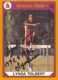 Lynda Tolbert (Earned four national titles while an Arizona Sun Devil, earning eight All-America honors. She also competed in 1992 & 1996 Olympics earning the bronze medal in the women's 100 m hurdles event. She was nice enough to sign in 8 days) rec'd 10-06-17