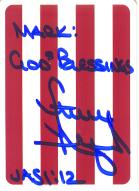 Don Rigazio (This was disappointing, Mr. Rigazio lives near me and kept my Olympic card. He was a goaltender on the 1956 U.S. Hockey team that won a silver medal in the winter games at Cortina D'Ampezzo, Italy. He sent a signed index card in 3 days) rec`d 2-14-02