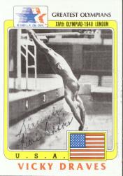 Vicky Draves (Won the Olympic platform diving title to become the first woman in Olympic history to win both the springboard & platform diving gold medals at one Olympics (1948 London Summer Games). She signed my card in 1 week) rec`d 02-04-02