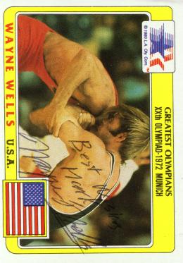 Wayne Wells (Won a gold medal in the 1972 Munich Olympics in the welterweight class for wrestling. He signed my card in 2 weeks) rec`d 03-05-02