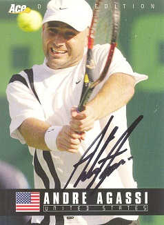 Andre Agassi (Former World No. 1 player was an eight-time Grand Slam champion and the first male player to win all four Grand Slam tournaments on three different surfaces (hard, clay and grass). He signed in 1 month using using Sports Collectors Net) rec'd 12-05-14