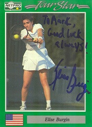 Elise Burgin (Former tennis player was an All-American at Stanford University from 1981-84. She competed professionally from 1980-93 and signed in 22 days) rec'd 12-31-15