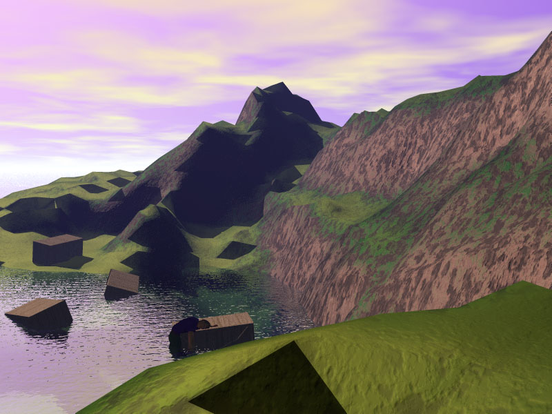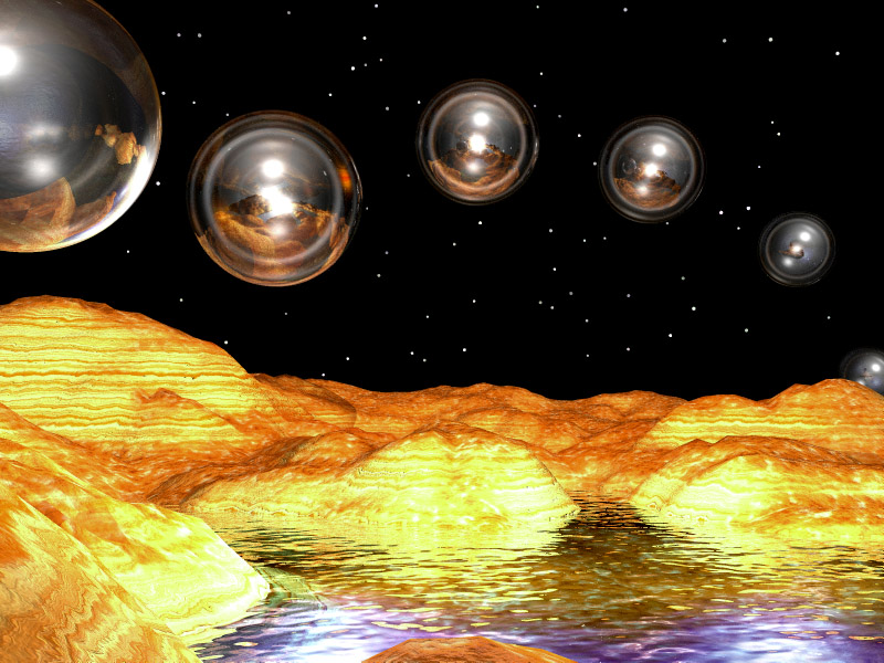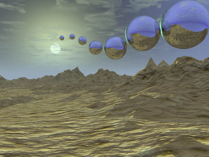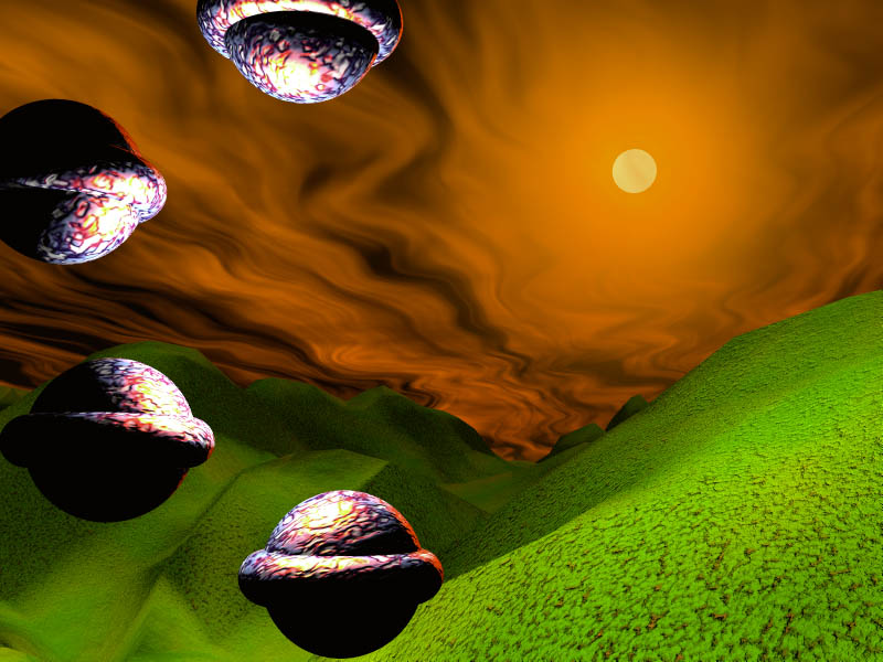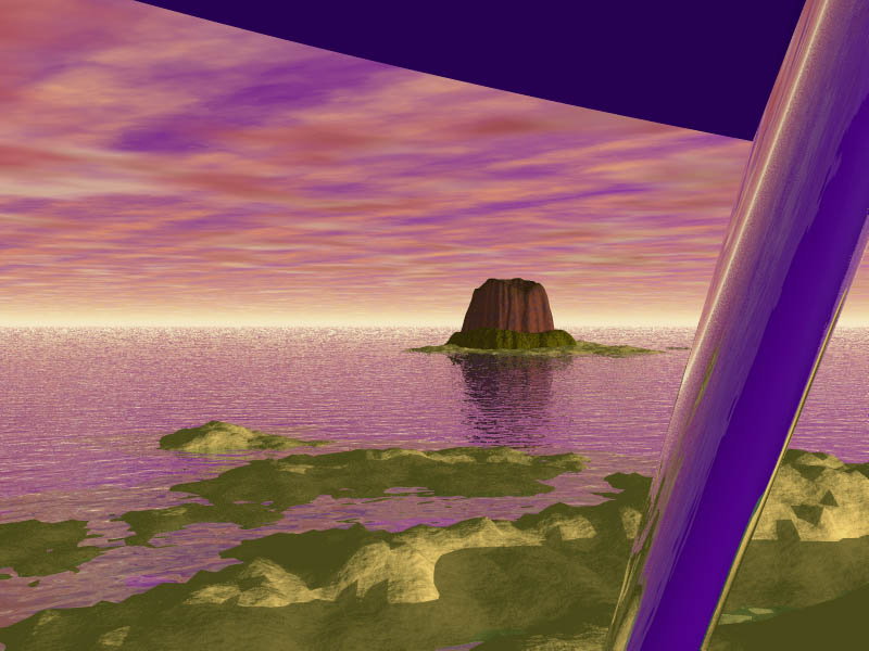 This took a phenominal amount of time to render. I hope to get a G4 so it won't take so long. I want to be able to do more because this one came out cool. Actually, now that Bryce 5 is out, I could've done this same thing without it taking million years. Whoopsie.