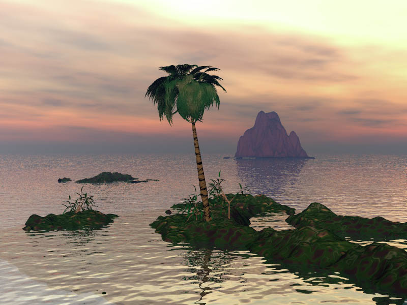 Now this is a lot better than my first beach. It has Bryce 5 plantlife! And not to mention a better volcanic island... (If you haven't noticed, I like ellipsis just as much as reflections!) This is the better version.