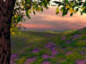 Beneath an apple tree, in a meadow, on a warm spring morning.
