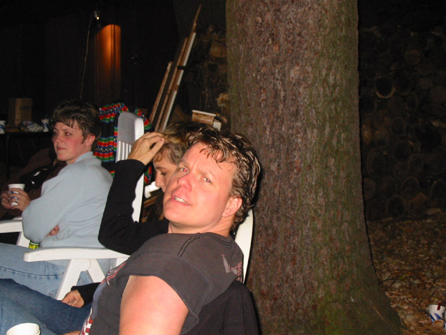 Here is a picture taken at a bonfire party I had in my back yard in November of 2001. I KNOW you can't see the fire in the picture!! Trust me, it's there. It was a great night for it, too ! The temp was somewhere in the 70's that night!!! About 40 people showed up. Some people brought guitars and jammed around the fire till the wee hours. It all wrapped about about 2 AM.