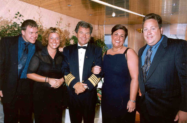Ok, here's a picture from a 7 day cruise some friends from church and I took to Bermuda in the summer of 2000. I don't know WHAT the heck I was trying to look at! Maybe I was so impressed with the Captain. Anyway, this was taken before the dinner on the formal "Dinner with the Captain" night. It was cool but I got ripped off !!! The Captain didn't actually sit with us! They should've called it the "Get all dressed up so you can get your picture taken with the Captain and then you have to pay to get the picture and then don't see the Captain for the rest of the night" dinner. The cruise was fun. There wasn't quite enough for me to do,though. I think it was more geared toward people who like to just relax on their vacation and not do much of anything but rest. I like to do all kinds of stuff and have adventures. We DID do some cool snorkling,though ! We didn't have great weather though, due to a hurricane off the shore. Not dangerous, just rainy in the morning and night time. One day it rained REALLY HARD all day long,though. The snorkeling could have been a little better if the water was calmer. Again, due to the hurricane, the rough water impaired visibility due to little air bubbles and kicking up sand. They had TONS of food on the boat. Overall, it was pretty cool. I would do another cruise. I would pick a different boat with different ports of call though, to have different adventures!