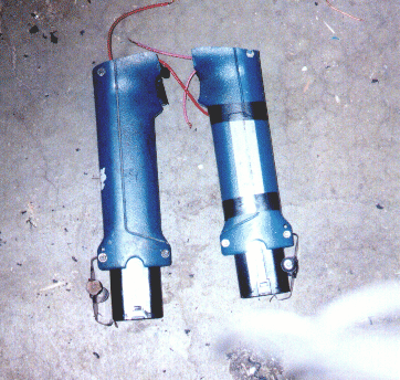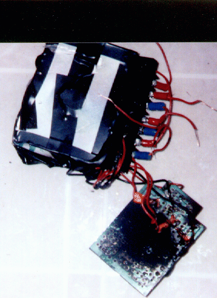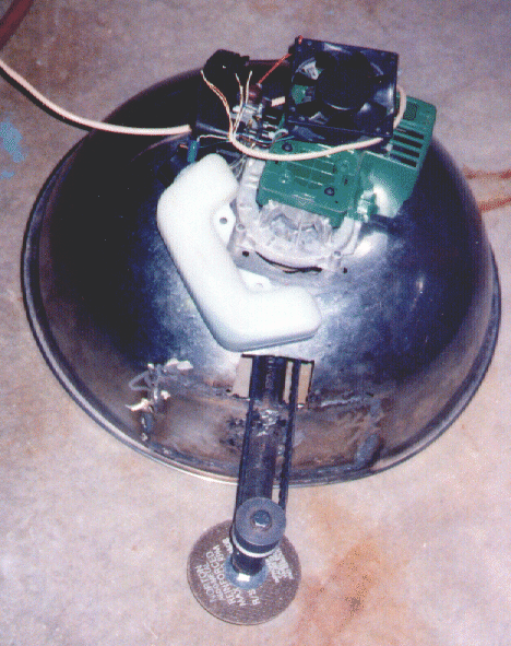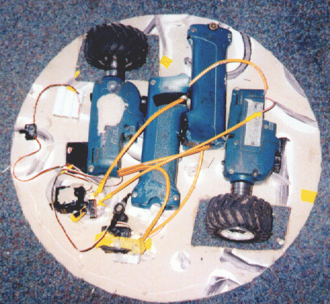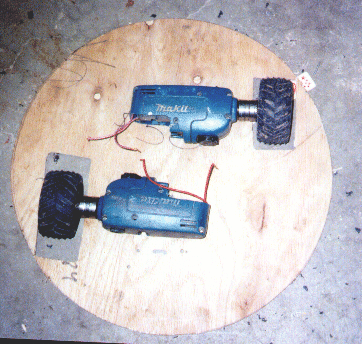 The first picture is of the shell when it was a BIG bowl and not a robot. The second is the prototype base the drills and the old wheels, third is the batteries in their holders (the handles).