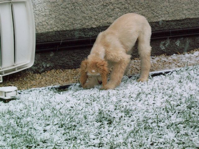 Where'd the grass go? I gotta go! First snow.