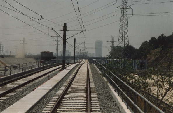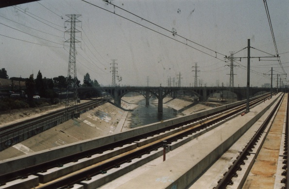 This is the view crossing the impressive Arroyo Seco Trestle, which was orginally built by the Santa Fe when they constructed the Second Sub. It was modified during Gold Line contruction to accomodate 2 tracks.