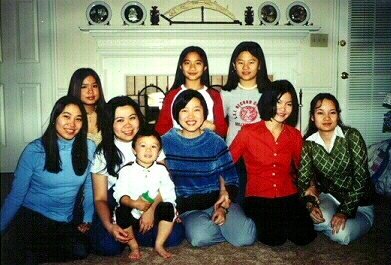 This is a picture of some of my female cousins. From left to right: back row - Angela, Bom, and Tram. front row - Ti, Ha, Phe, Cami, and Xi Xi. The little kid is Ha's child. His name's Joey.