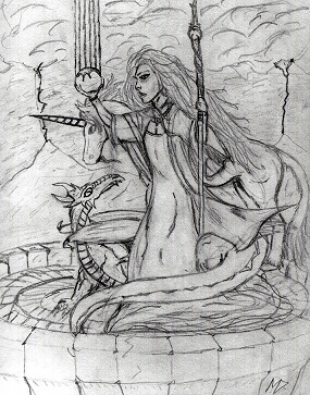 I draw a lot of fantasy related characters. One such example is this sorceress. The inspiration was to capture the frailty that is present in most magic-users, yet bring out the raw power that each user possesses. The dragon and the unicorn was a cool addition.