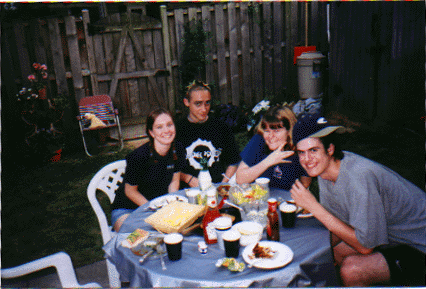 Sarah (with the pigtails), Dan (with the funky hair), Diana (with the West Side [?] hand thing) and Jacob (with the hat)....this was taken in the summer of 1999.