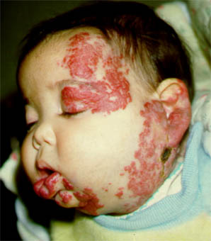 Il est purement cutané constitué dune nappe rouge dabord lisse puis saillante, brillante, posée sur une peau saine, cest " la fraise " du langage populaire (46), terme véhiculé au 18ème et 19ème siècle, né de la croyance dHypocrate, que la mère pouvait marquer de ses envies son ftus en gestation (51).