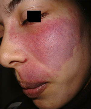 Synonymes : naevus flameus, tâche de vin, angiome mature.