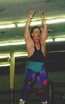 < Bob Star Displays the MEWF heavyweight title just before a title defense for his partner (heavyweight Champion) Lucifer "Knight of the Road"