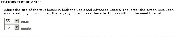 - If you are using the advance editor you may want to resize the editor window by changing the width and height of the editor