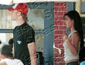 *NSYNC hunk JC Chasez and new girlfriend - actress Emmanuelle Chriqui who played bandmate Lance Bass's love interest in the movie 'On The Line' have lunch at trendy cafe 'Lulus' in Beverly Hills.