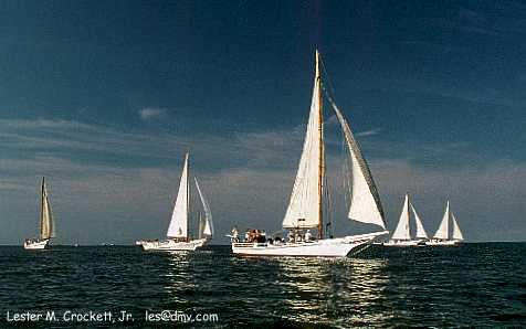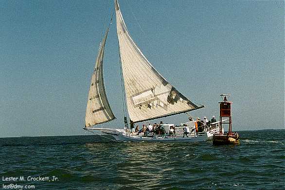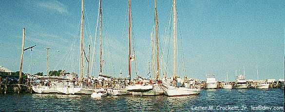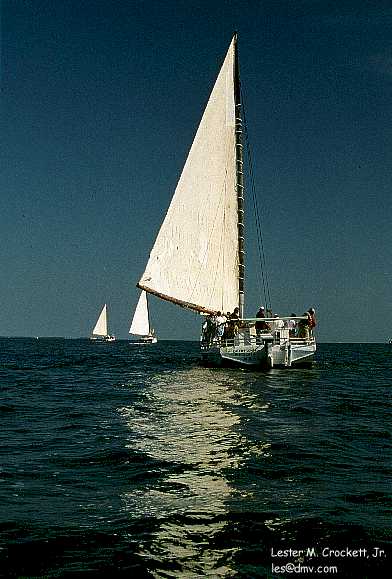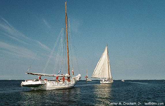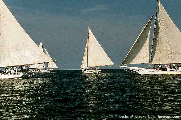 It was a beautiful day at the 42nd Annual Deal Island Skipjack Races this year. Bright blue skies and light winds provided a picturesque background for photography and a slow race for the six skipjacks that had entered this years (2001) races.
