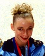 BREE ROBERTSON (NSWIS) D.O.B. 6/7/82 Hailing from Gosford NSW, Bree Robertson is coached by Delia Halmu and has enjoyed a tremendous surge up the national ranks, thanks to fantastic improvement and development of her skills. I remember seeing the "tiny" Robertson at the 1997 Nationals and never suspected that she would acheive the sucess that she has in such a small amount of time. 9th AA in 97 then 6th AA in 98, Robertson placed 2nd AA at this years Nationals. She competed in the Australian Group at the 1997 Four Continents Championships, held in Sydney, and placed 8th AA at the 98 Pusan Intl. Having grown 7cm in the last year alone, Robertson recently won a bronze medal on Hoop in a Bulgarian Intl and competed in the 1999 Four Continents Chamionships. |