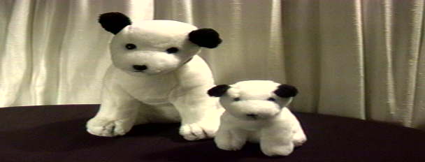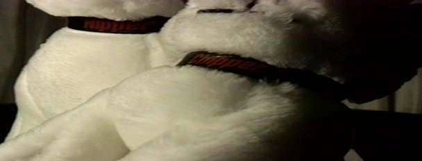 This is a mint pair of Nipper & Chipper the advertising dogs for RCA. Nipper was Thomas Edison's dog and the original picture shows him sitting on his master's coffin listening to a victrola playing "His Master's Voice." Lately we don't like death that much so the coffin has been phased out, but everybody always loved Nipper, so they gave him a little brother and gave the pair away in the early 90's. These little guys sometimes came with a cardboard doghouse. They were made by Dakin, both have their tags dated 1992. Nipper is about 11" tall and Chipper is about 6". They have their names on their collars too! You can have this pair for $25.00.