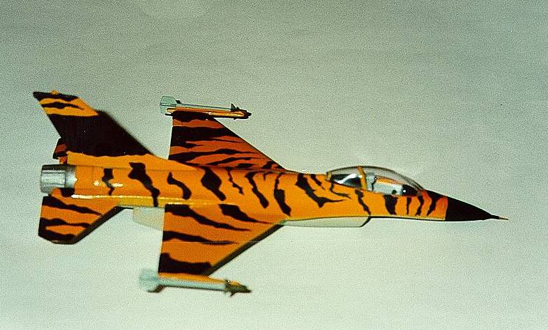Model shown is a TESTORS 1/100th scale Metal Model F-16.