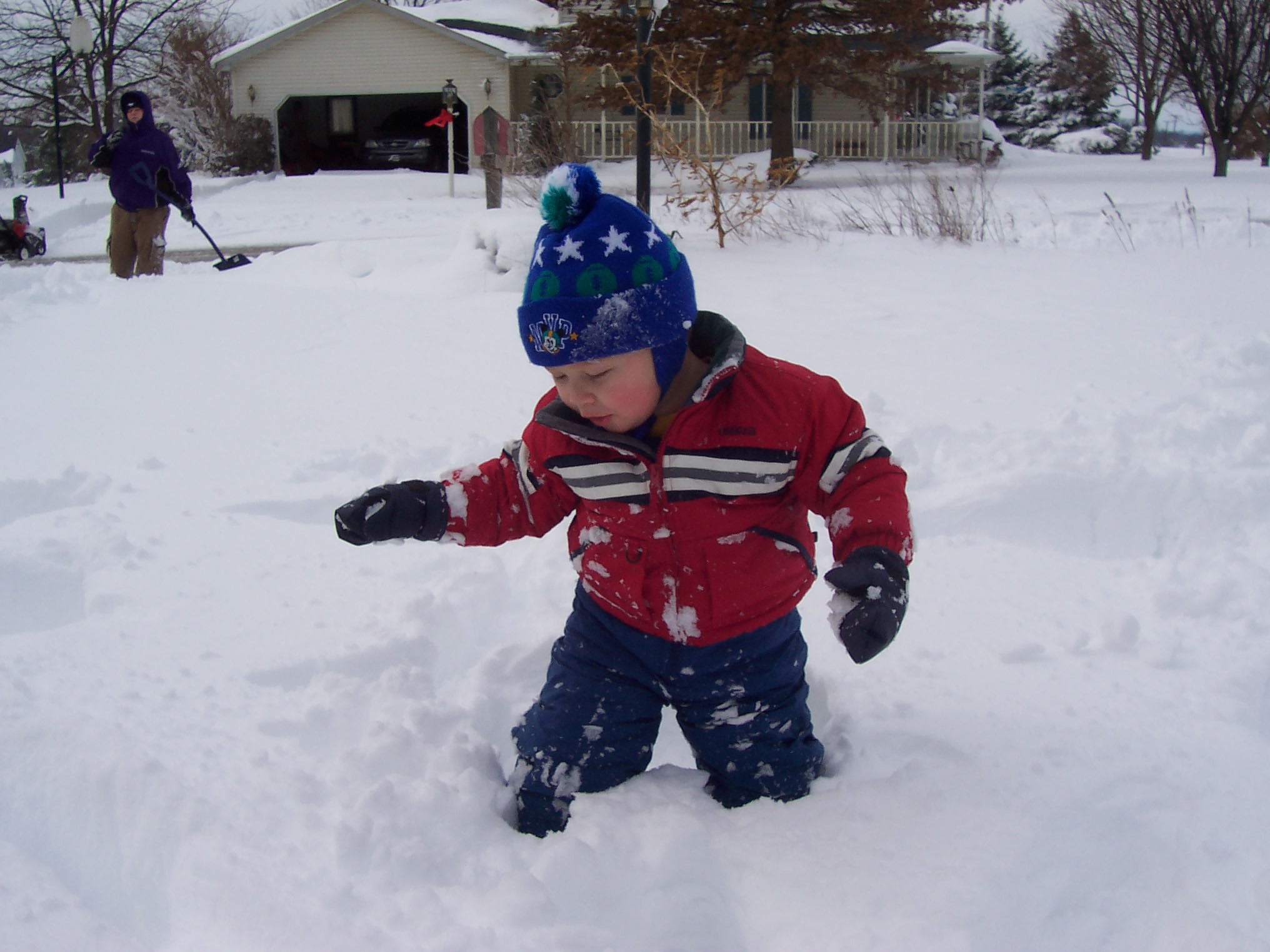 Elias had a little trouble (at first) making his way through the snow.