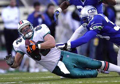 The Miami Dolphin finished the regular season with an 11-5 record, earning a home playoff wildcard game with which they lost to the Baltimore Ravens, 20-3. The season was a great season, but the there was still the lack to finish strong. Here are some photos of the 2001 Miami Dolphins Season.