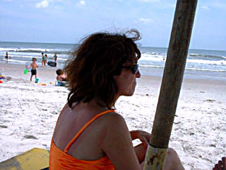 MOM CONTEMPLATED the universe while strolling along the surf line.