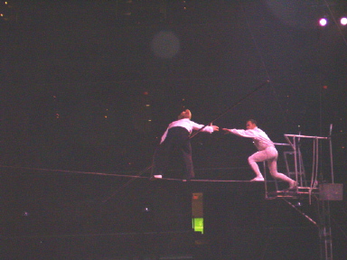 BELLO AND FRIEND put on, probably, the best show on this tightrope act. Bello sat on a seat and then stood up on it, right on the wire!