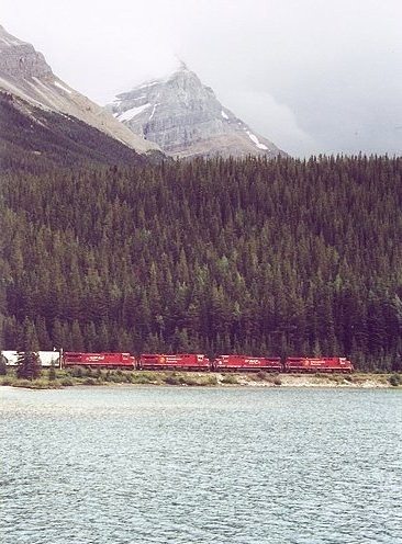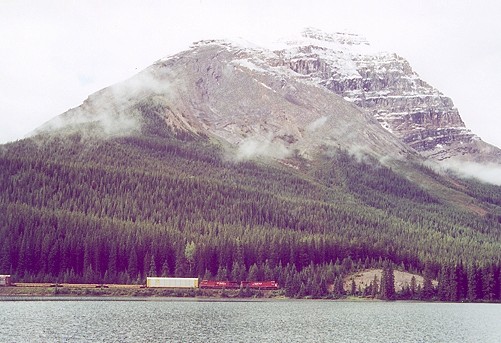 W. Lake Louise is a beautiful spot to watch trains. It is right on the highway