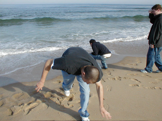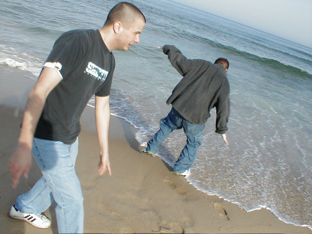As Marc walks by as if he were retarded...you can see that the Ocean claims it's first victim, Steve. I believe his attack stance was not smooth enough as you can see by the angles he is holding his arms.