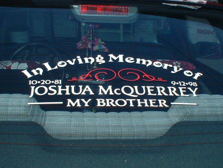 When I was 11, I lost my older brother, Josh, to a car accident. It was the hardest thing I have ever went through in my life. I still think about Josh everyday, and I miss him very much. It hurts to know that he was taken from me at the age of 16. I'd like to give out some shouts to everyone who knows me! Enjoy life now before it takes you away!
