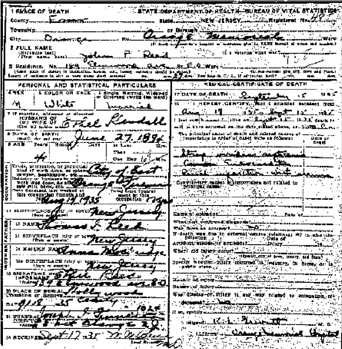 Death Certificate for John F.