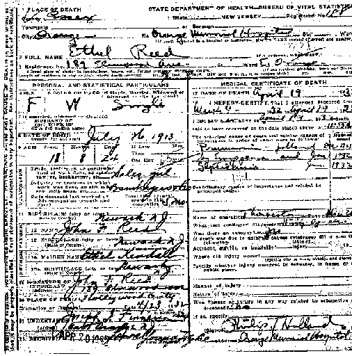 of Little Ethel's birth and death. We've seen Ethel's birth certificate on the previous page.