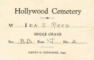 Ethel's;at the Hollywood Cemetery. The location of the plots was confirmed by