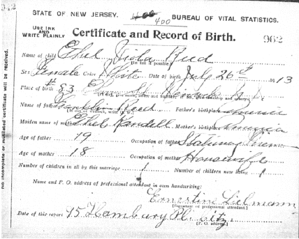 1913. They named her Ethel Viola Reed. The birth took