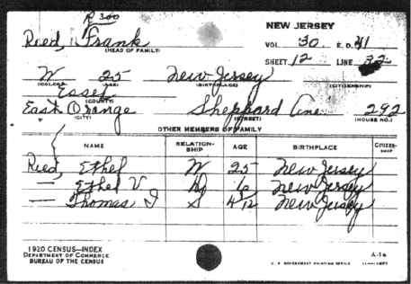 record we found was the family on the 1920 census report. John Franklin Reed now listed his first name as