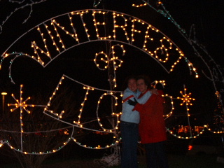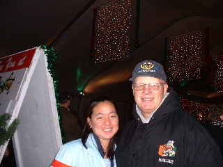 IN OC, Suzy and Guy posed inside the tent before the Winterfest ride. It took 1/2 an hour to get there through the two zip-code waiting line.