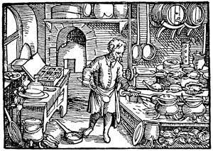 This is a listing of sites on the care and preservation of items relating to kitchenware. A few of the sites give contradictory suggestions. I do not endose any particular site, and at times it is safer to check with an expert before working on an antique. Winterthur offered an interesting day long seminar: "Caring for your family treasures" [fabric, books/papers, photographs and silver], which included tours of their various storage areas. "Caring for your collections" was held at Mount Clare Museum in Baltimore the following summer. On Feb. 4, 2006 Winterthur will hold a one day session on "Taking Care of Your Family Treasures". The picture is from the Medieval/Renaissance Food Clip-Art Collection by Cindy Renfrow.