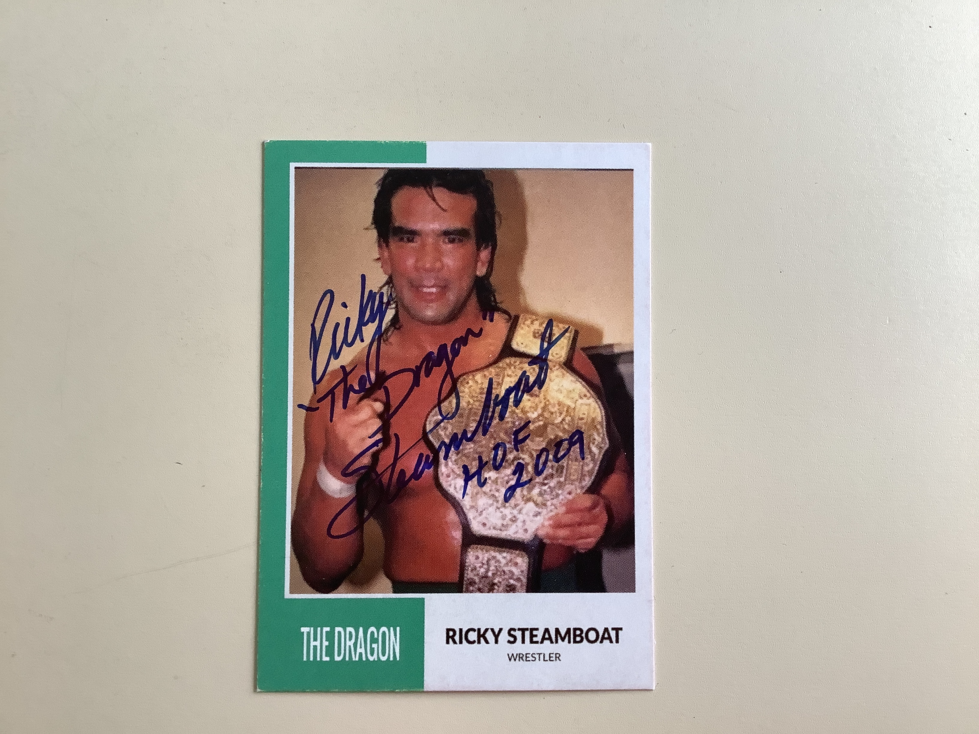 | Ricky “TheDragon” Steamboat | sent: 05/08/23 received: 05/22/23 | Ricky signed my custom card and wrote a nice note that he signed as well. |  |