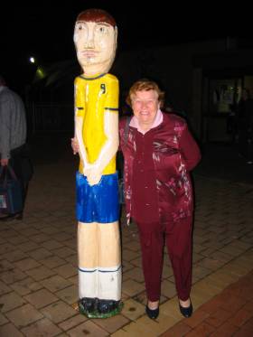 Nanna Kimm putting her arms around a strange looking man....