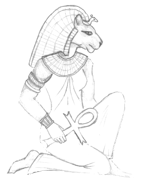 The lioness-headed goddess Sekhmet, goddess of epidemics and doctors. Just a doodle.