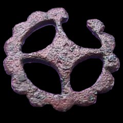 Voorzijde: een zogenaamd triquetum (symbool met drie beentjes) in een krans