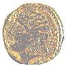 Vercingetorix, bronze statue in Alésia. Note that his moustache is absent on many other images, like on the coin below right. The "Archéodrome de Bourgondie"