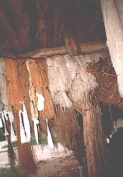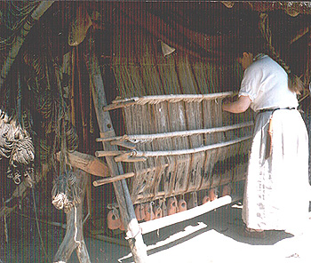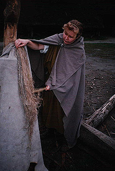 Index bronstijd in Nederland Index eerste boeren in Nederland Prehistorische technieken om wol en vlas te maken en te bewerken1 van de 11 bewerkingen van vlas tot linnen. Vlas over de hekel halen: "repelen", hierdoor worden de zaaddoosjes met het lijnzaad erin los van de stengels "gekamd". Vlas "brakelen"; de vlas-stengels moeten worden gebroken waarna de vezels tevoorschijn komen. Vlas zwingelen; met een spaan de rommel en harde stukjes uit de vezels slaan Weven Weefgetouw met diverse zelfgemaakte kleuren wol. Weefgetouw met diverse zelfgemaakte kleuren wol (#2). Zelf wol verven door een pot met kokend water te vullen met gebeitste wol en een kleurstof (hier: vlierbessen) Diverse zelfgemaakte kleuren wol. De labels die eraan hangen beschrijven de gebruikte methode. Met hartelijke dank aan Runa (Liesbeth); een van de vlas-, wol- en kleding deskundigen in het Historisch Openluchtmuseum Eindhoven.